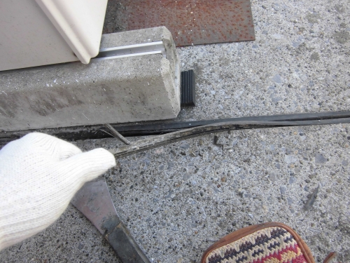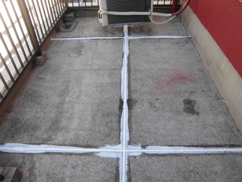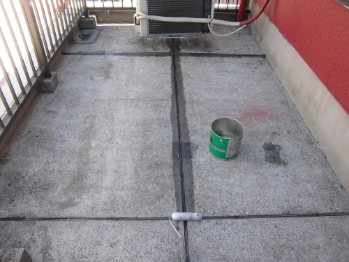 伸縮目地が劣化していますので、撤去してノンブリードウレタンシーリングを打ちます。