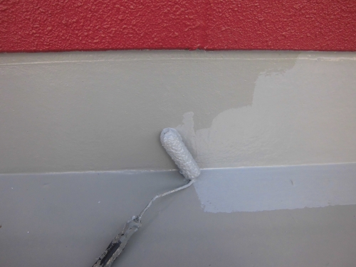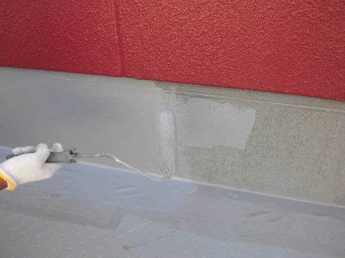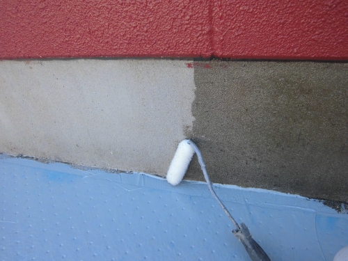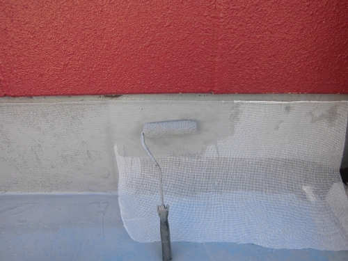 立ち上がりはプライマーを塗り、主剤で挟むように補強用のクロスを貼り付けます。