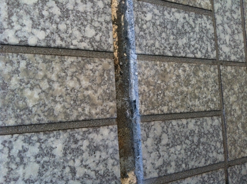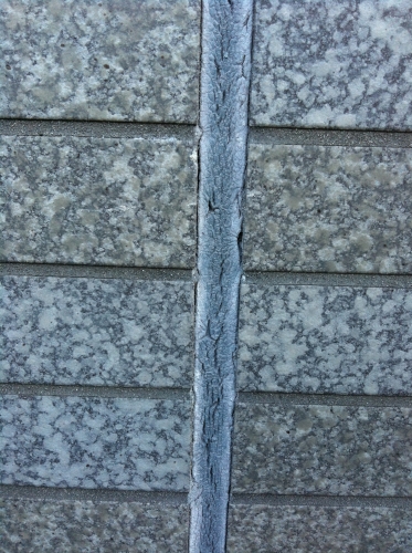 タイル面の伸縮目地が経年劣化でひび割れていました。