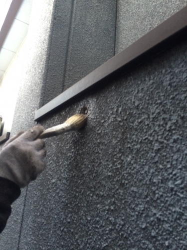 外壁の下塗りです。微弾性の下塗りでヘアークラックにも追従します。