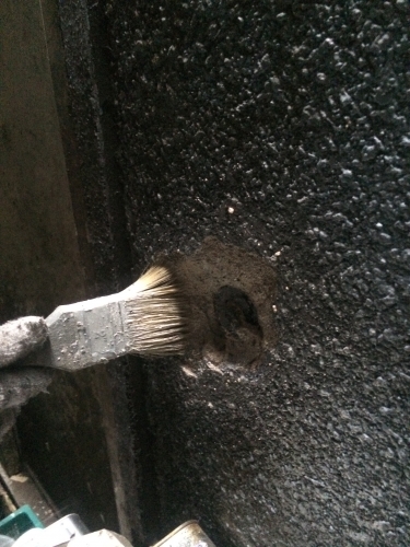 施工前の写真ですが劣化が進んでおり、触ると表面の石がパラパラ落ちる状態でした。