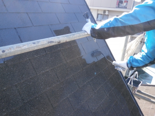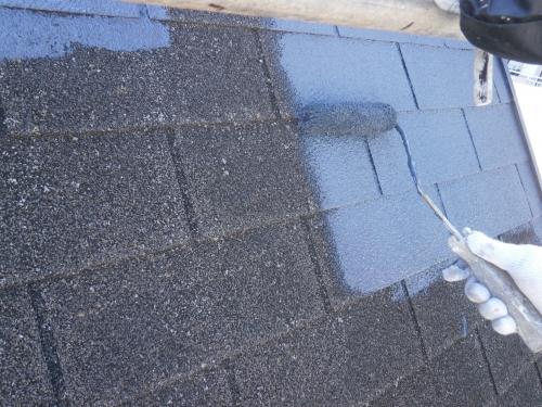 アスファルトシングル屋根塗装中塗りです。