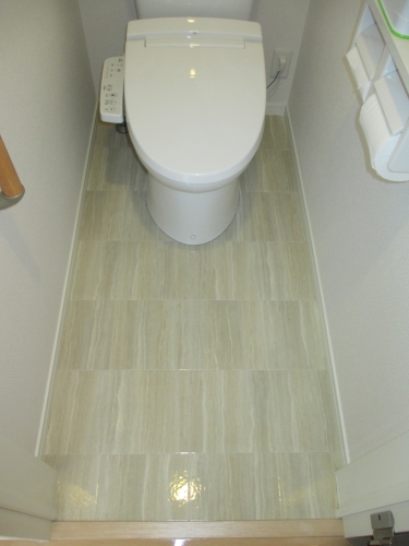 また、この材料はフローリング以外の場所にも使えますので、トイレのクッションフロアもこの通りピカピカに。