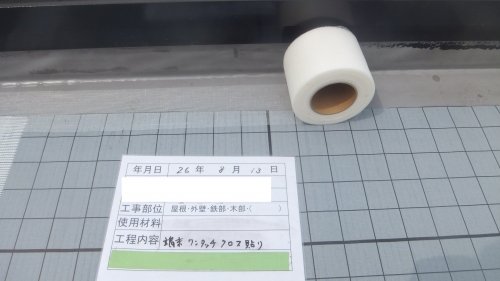 シートの繋ぎ目と端部にはジョイントテープを貼り、防水材で補強をしておきます。