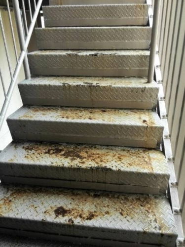 マンション、鉄骨非常階段の補修です。