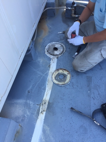 既存脱気塔撤去 既存目地撤去 水がでてきました。