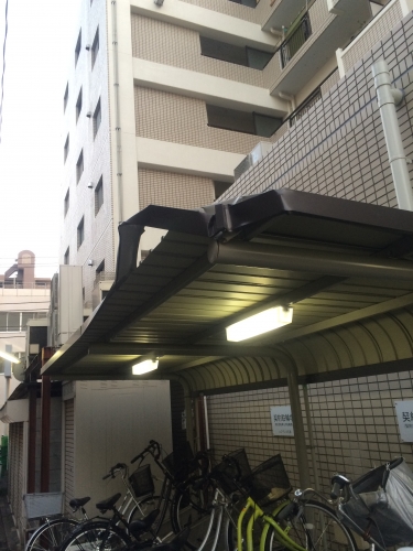 マンション駐輪場の屋根補修です。