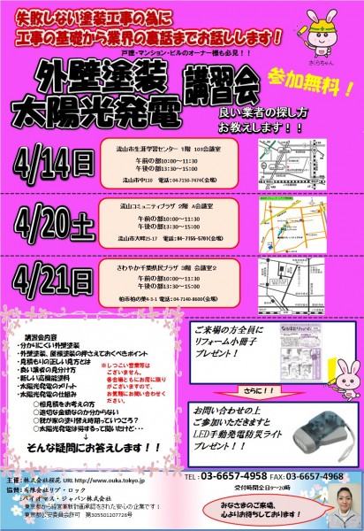 外壁塗装・太陽光発電講習会のお知らせ 流山市・柏市2013/03/25