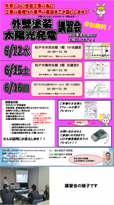 外壁塗装・太陽光発電講習会のお知らせ 松戸市2013/05/27